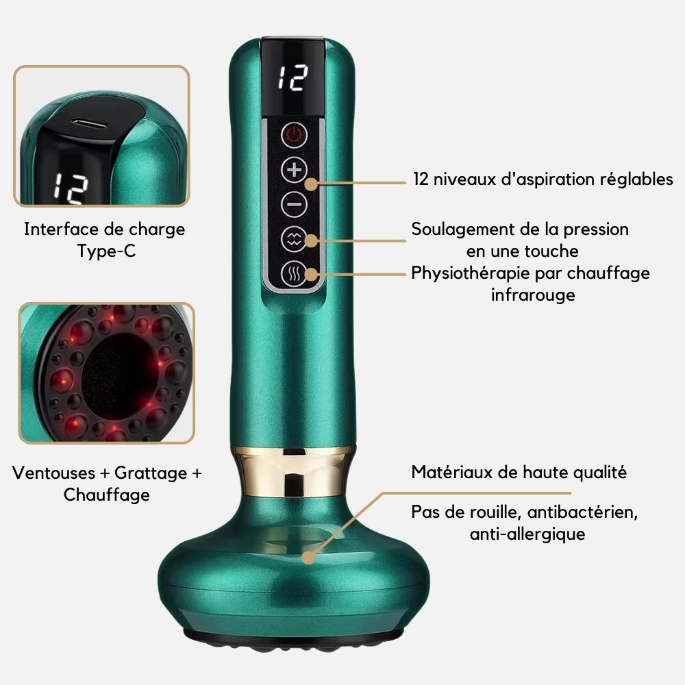 2- Sélection du mode : Choisissez parmi les différents modes de massage proposés : ventouse seule, infrarouge seul ou combinaison des deux.