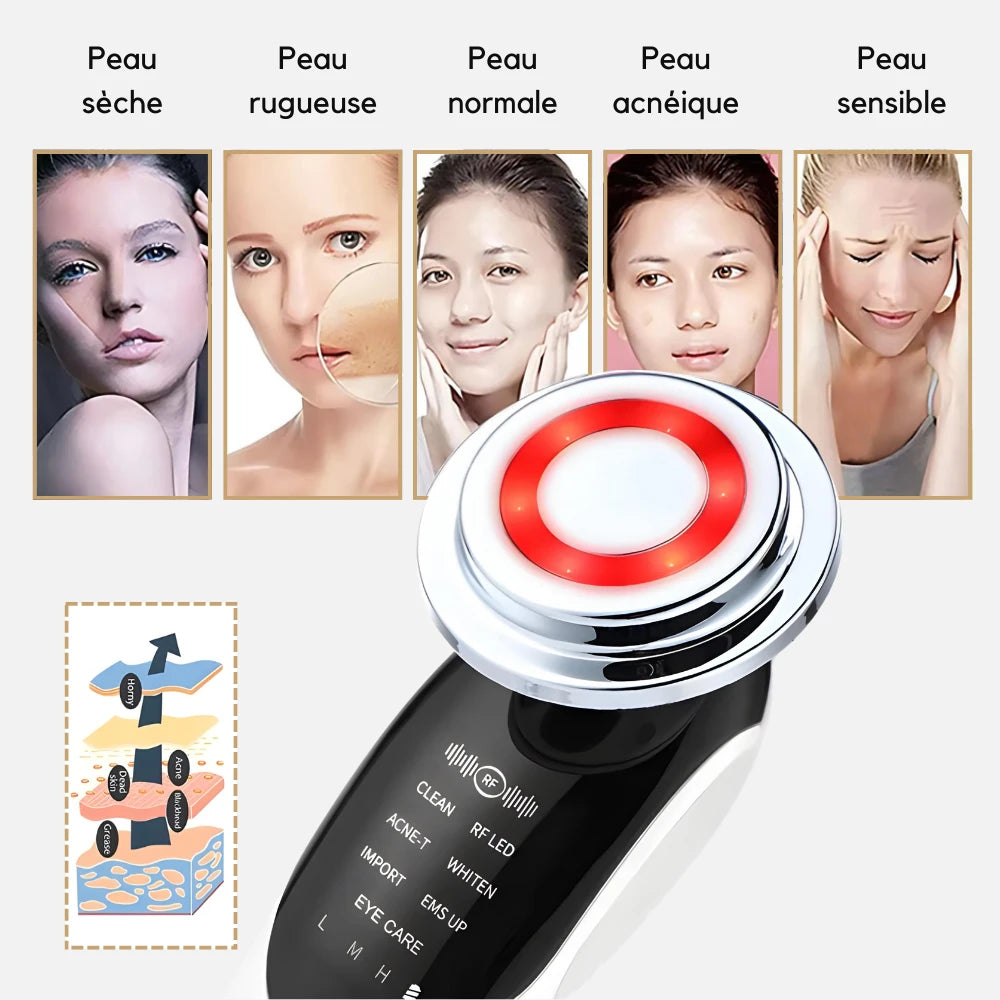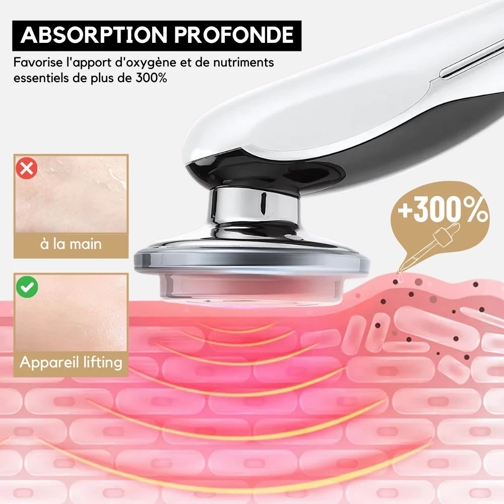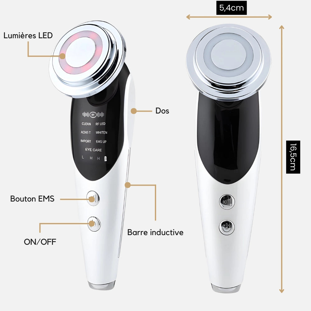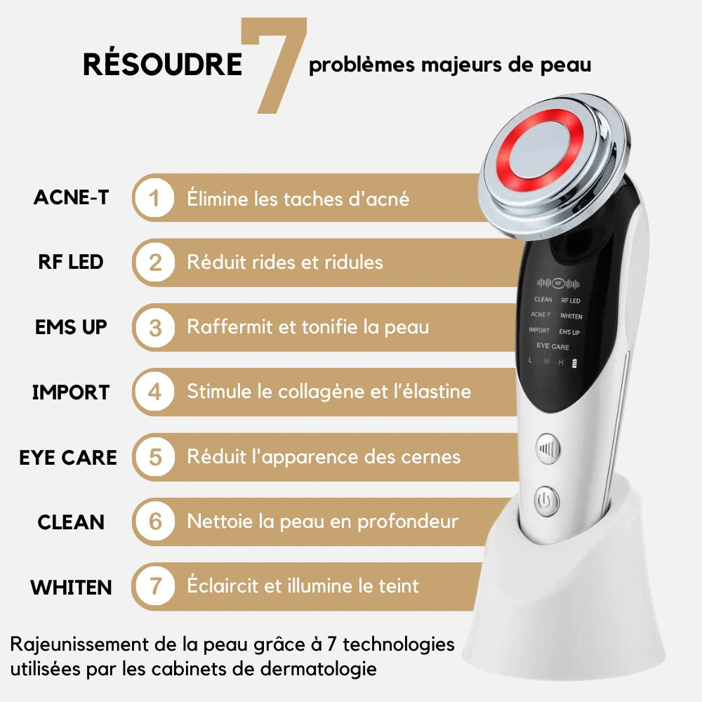 Révolutionnez votre routine beauté avec appareil EMS et Luminothérapie pour lifting visage ! 7 technologies pour anti-rides, anti-âge, luminothérapie, massage, lifting, tonification, raffermissement de la peau des résultats cliniquement prouvés dès la 1ère utilisation. Peau raffermie, rides lissées, teint éclatant.