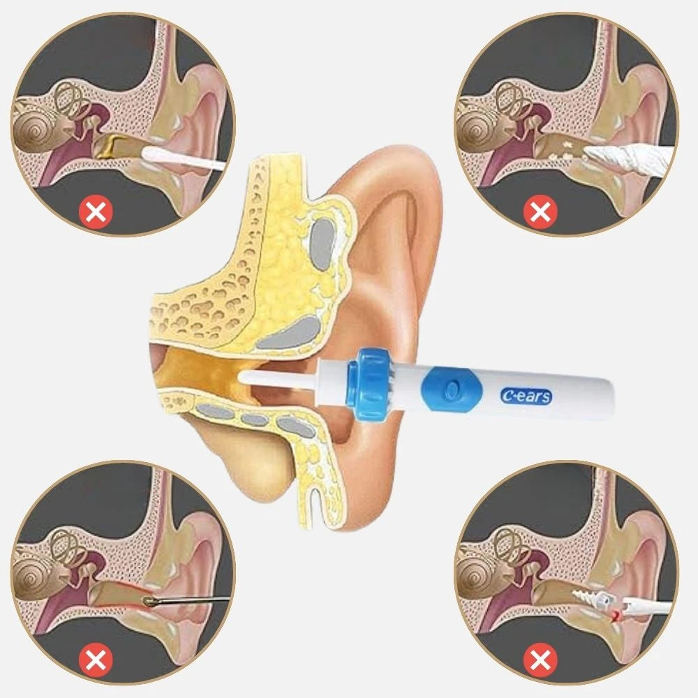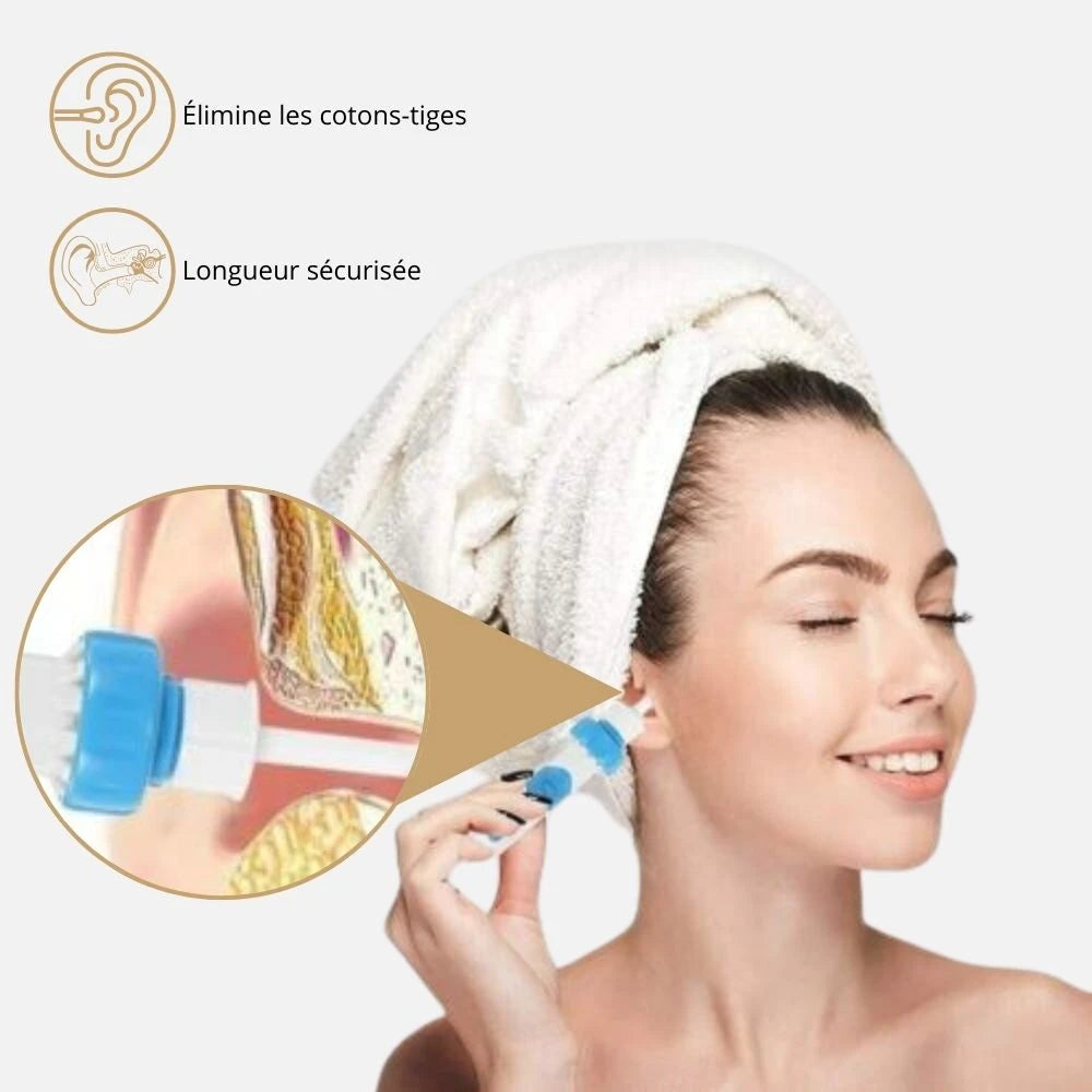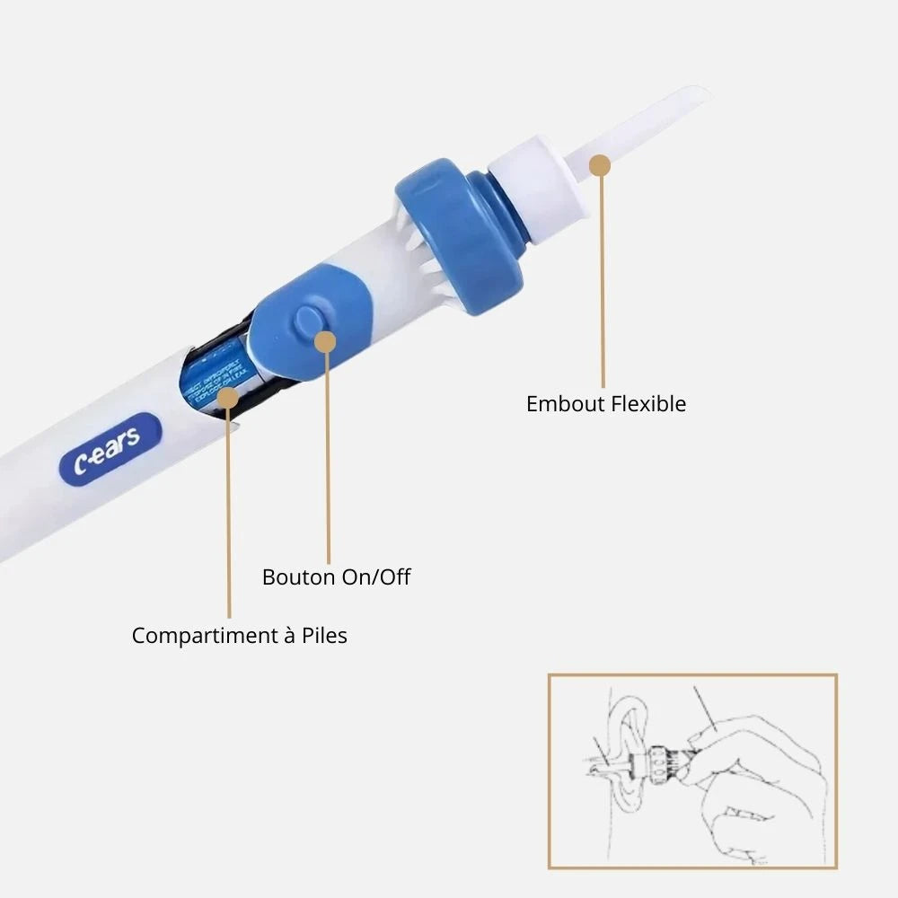 5- Appuyez sur le bouton ON pour activer l’aspiration et laissez l’appareil retirer le cérumen en douceur et sans douleur.