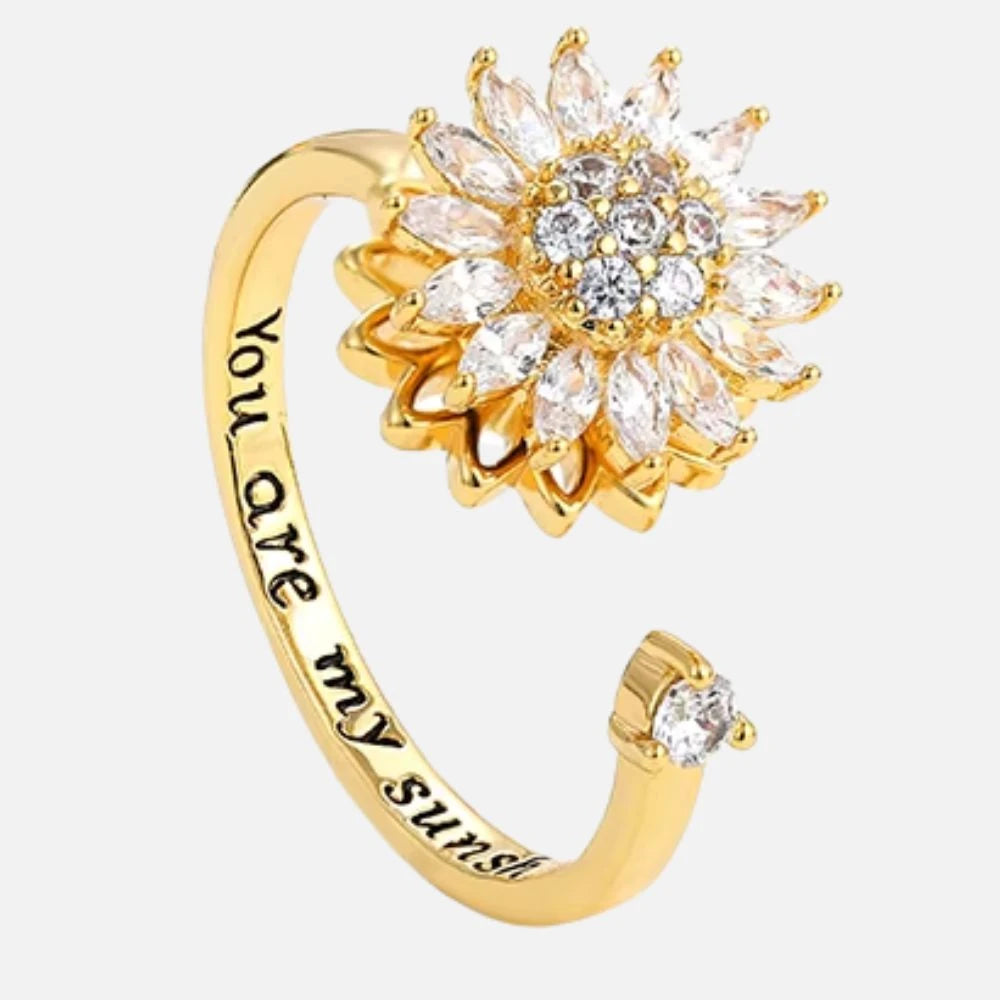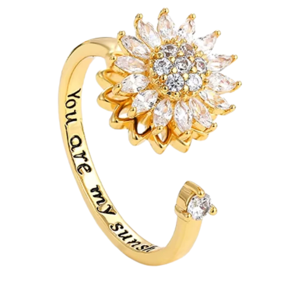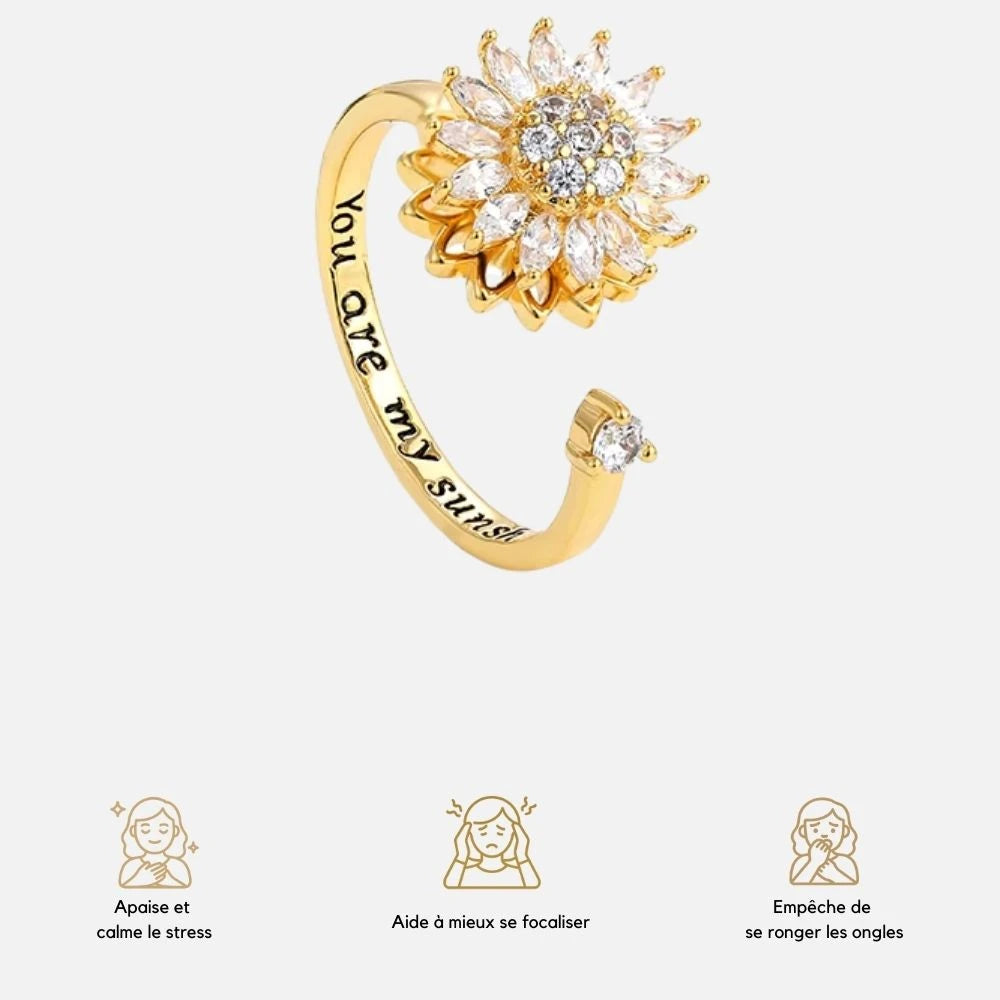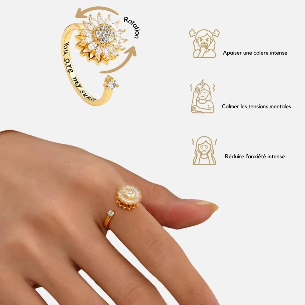 Transformez le stress en sérénité avec cette bague d’anxiété ajustable. Son anneau rotatif discret apaise l’esprit, tandis que son design tournesol en cristal capte la lumière et l’attention. Conçue en acier inoxydable, elle résiste au temps comme à vos journées chargées. Élégante, apaisante, elle ne vous quittera plus.