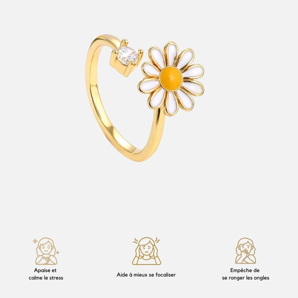 Apaisez votre esprit avec cette bague d’anxiété ajustable en acier inoxydable. Sa marguerite rotative offre un geste discret et apaisant en période de stress. Confortable, durable et élégante, elle allie bien-être et style au quotidien. Une solution anti-stress pratique, toujours à portée de main.
