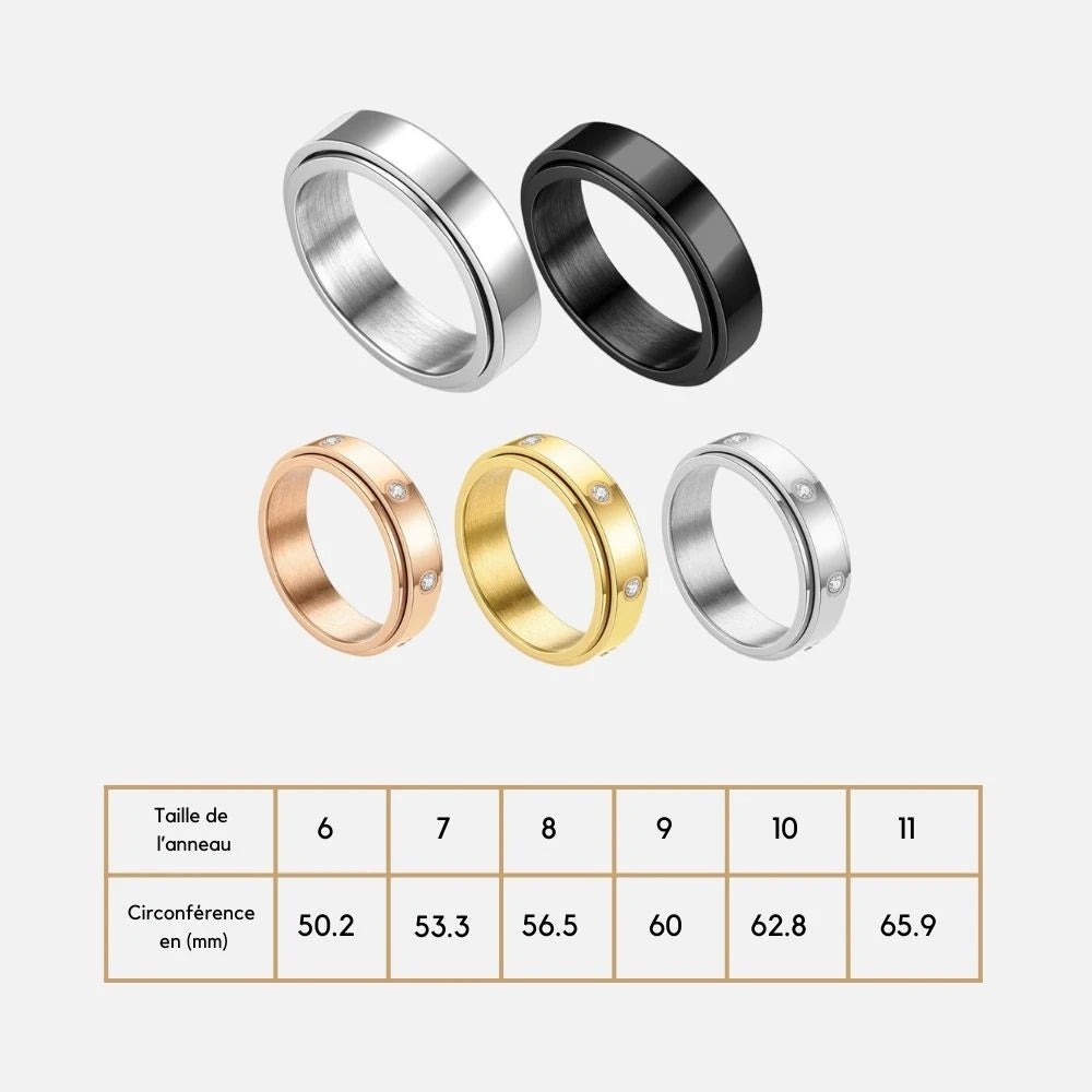 Quand le stress monte, gardez le contrôle avec style. Cette bague fidget spinner en acier inoxydable est bien plus qu’un accessoire tendance : c’est une véritable alliée contre l’anxiété.