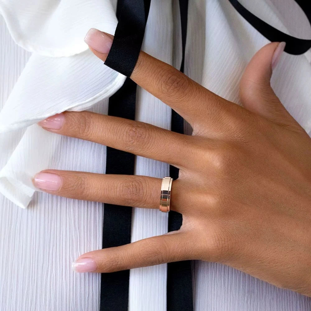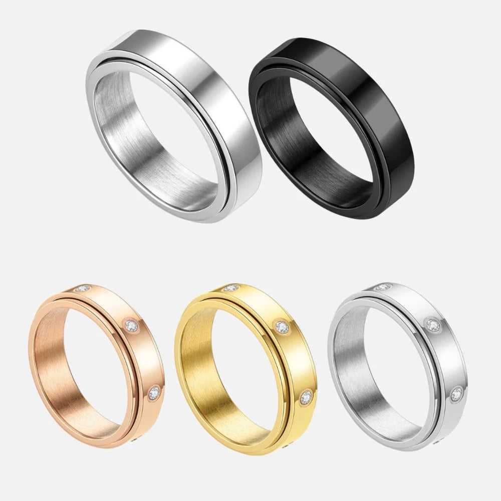 Découvrez la bague fidget spinner en acier inoxydable, pensée pour les couples qui veulent conjuguer élégance et sérénité au quotidien.