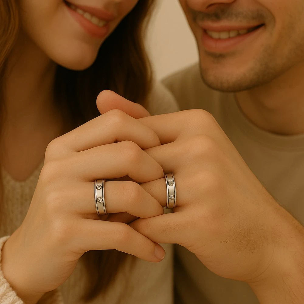 Un lien symbolique à deux 💑 : Chaque partenaire porte sa bague, signe d’une connexion forte et discrète.