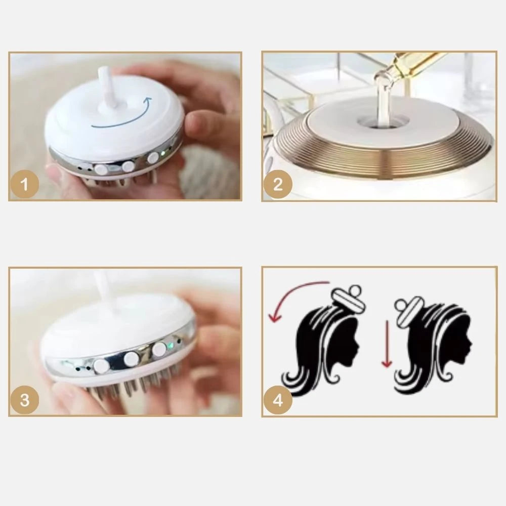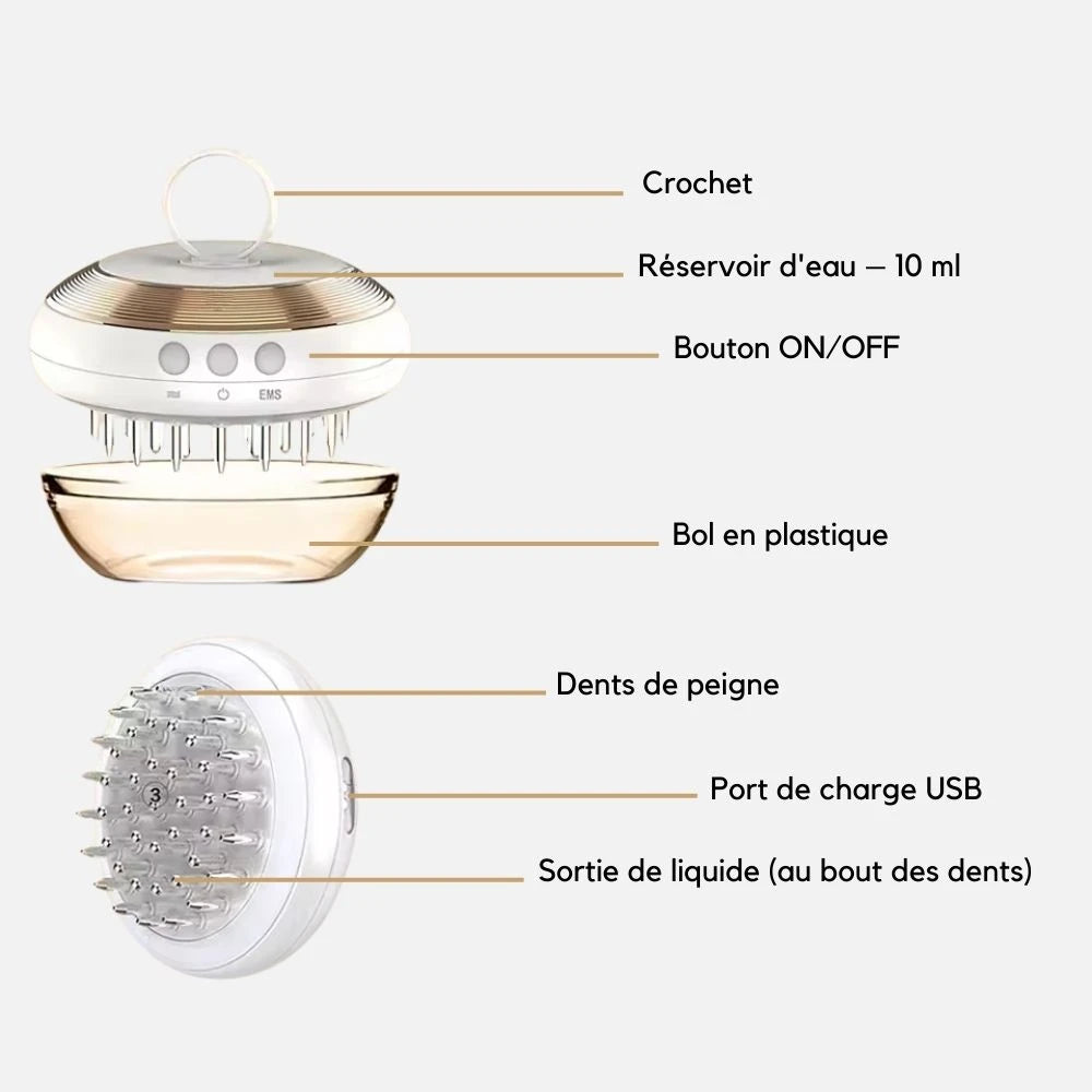 Verser de l’huile capillaire (facultatif) Ajoutez votre huile pour cheveux préférée dans le réservoir pour un soin nourrissant.