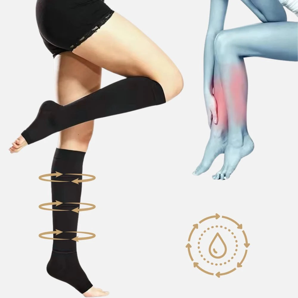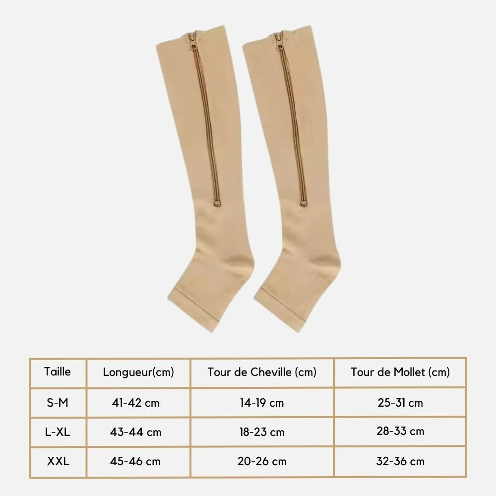 Compression graduelle ciblée (cheville > mollet) 🔄 : stimule efficacement la circulation, soulage les douleurs, réduit l’enflure et aide à prévenir les varices.