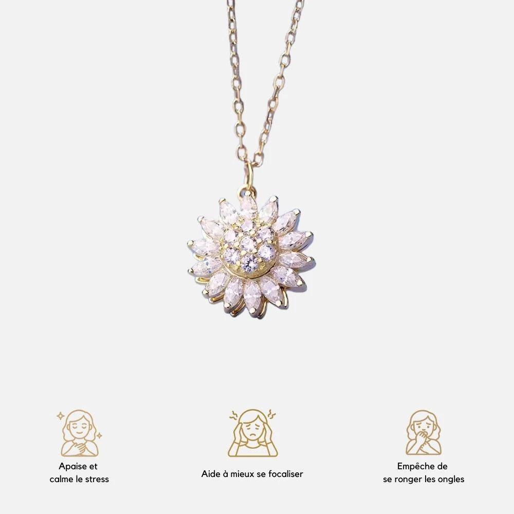 Apaisez votre esprit avec le Collier d'Anxiété en Cristal Sunflower. Alliant énergie naturelle et symbole de lumière, il aide à réduire le stress au quotidien. Un bijou apaisant et élégant, parfait pour retrouver calme, confiance et équilibre intérieur, où que vous soyez. Laissez le cristal agir.
