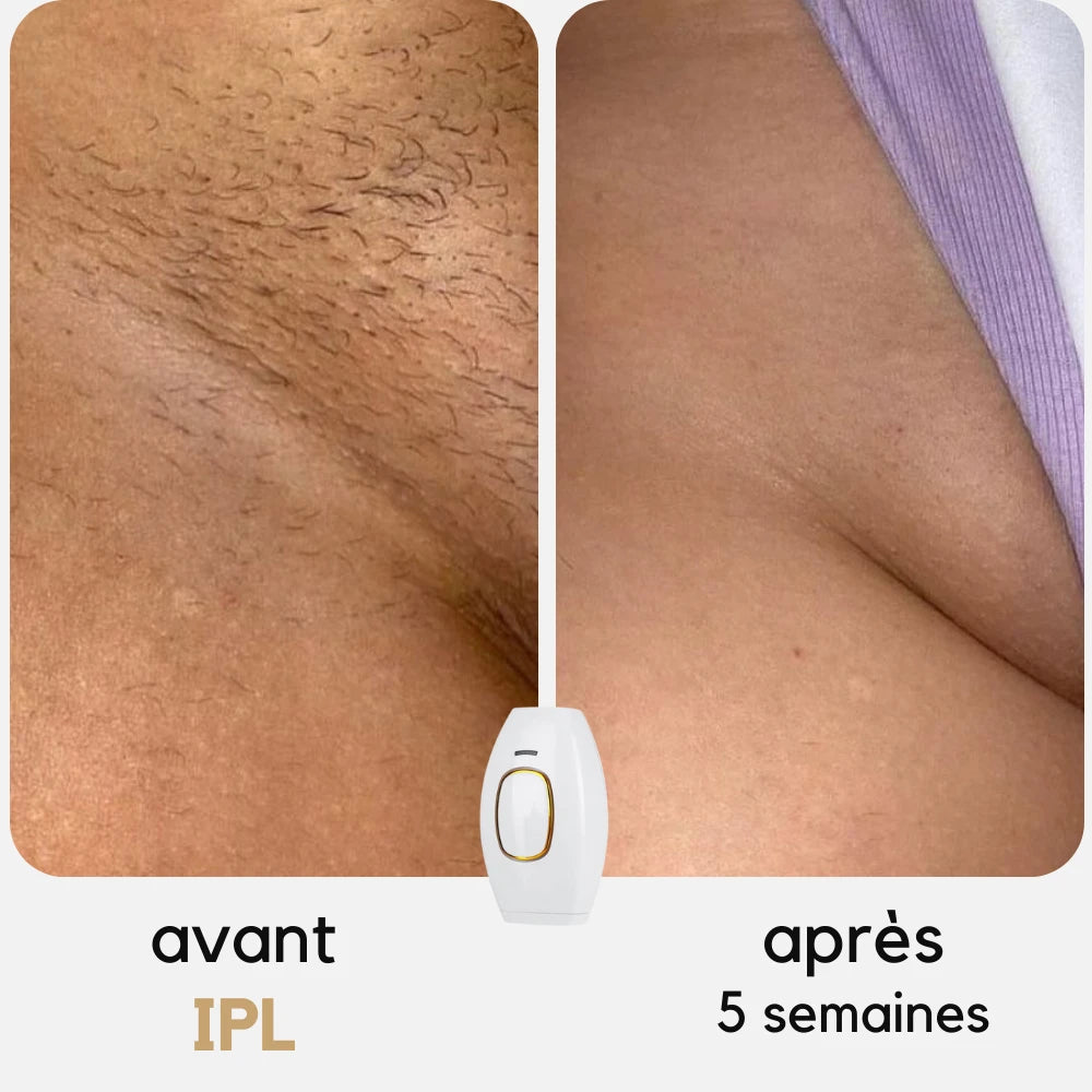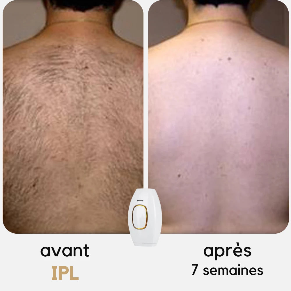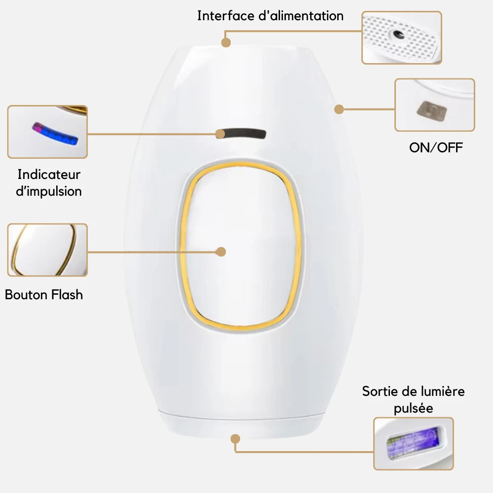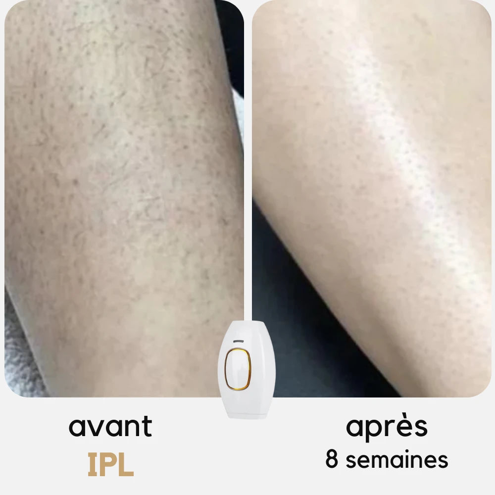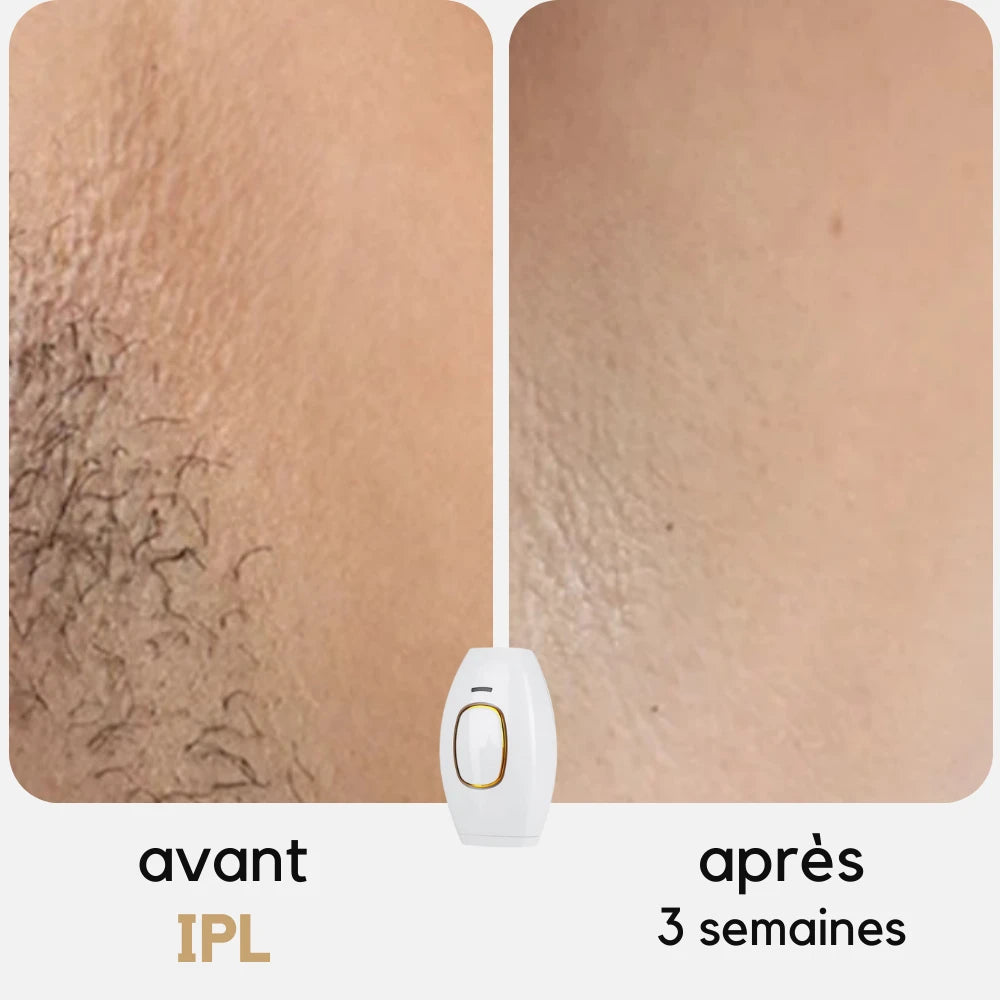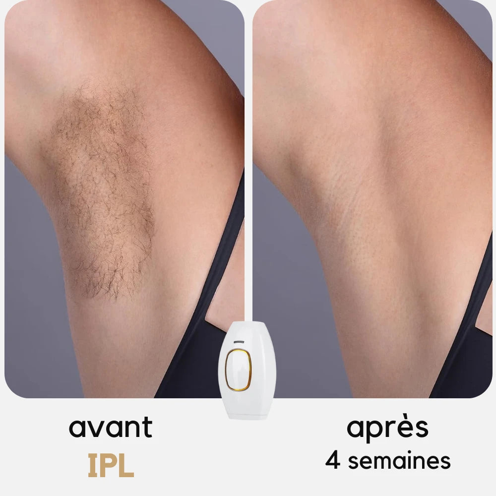Grâce à la technologie IPL, cet appareil cible la mélanine du poil pour l'affaiblir et ralentir sa repousse: