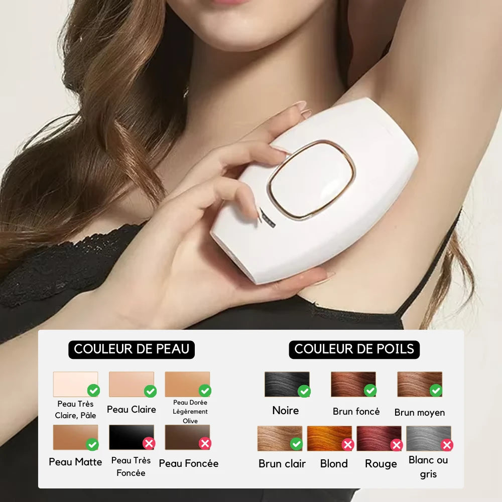 Poils clairs ? L'épilateur laser pro cible la mélanine avec précision pour une action ciblée, même sur les poils les plus fins.