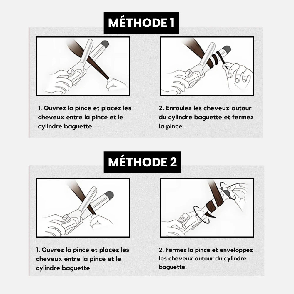 Le TwistCer® s’adapte à toutes les textures de cheveux grâce à ses réglages précis et ses embouts (19 à 32mm). Que vos cheveux soient fins, épais, longs ou courts, obtenez des boucles parfaites, sans frisottis ni dommages, en un clin d'œil.