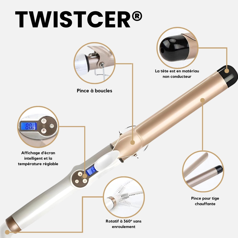 Le TwistCer® est conçu pour une prise en main facile. Son écran LCD, ses commandes intuitives et son cordon rotatif à 360° vous offrent une expérience de bouclage fluide, rapide et confortable, sans effort ni fatigue.