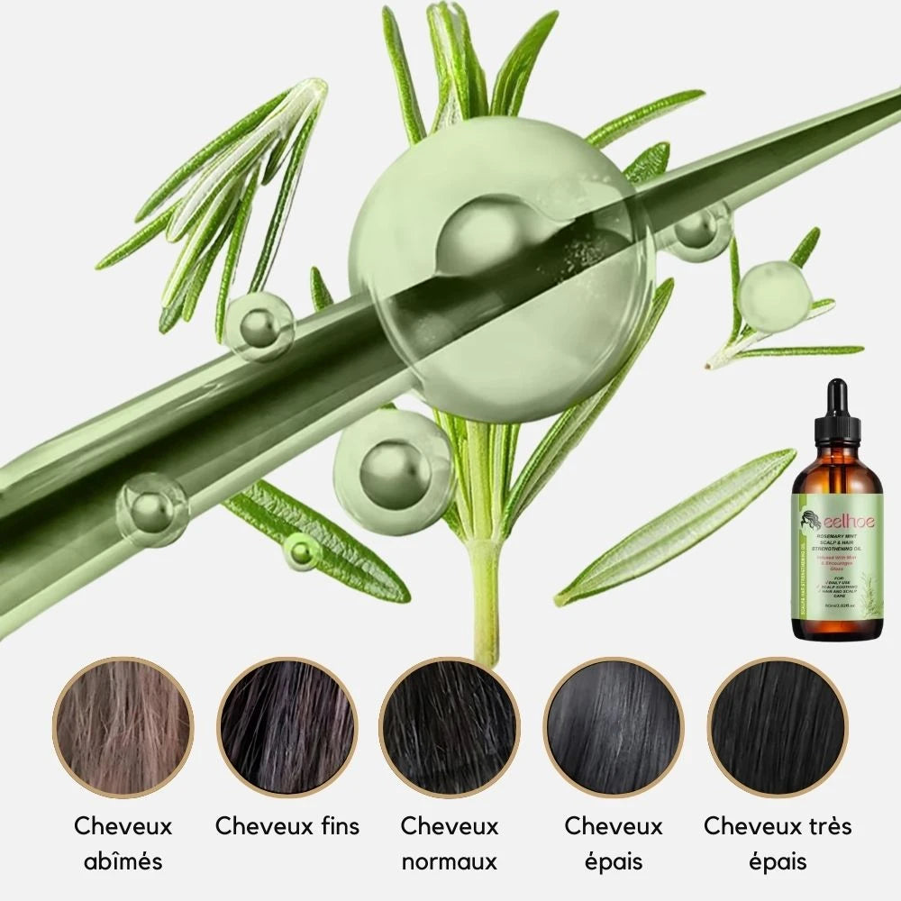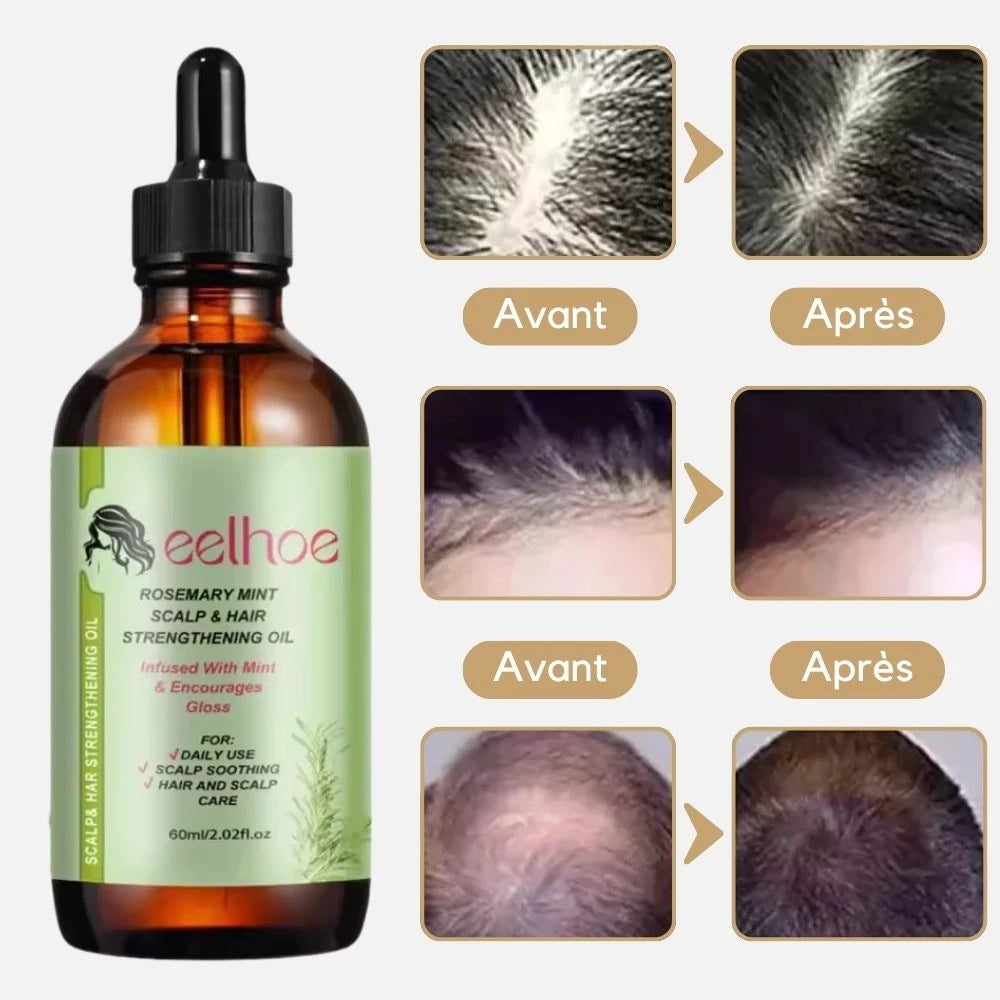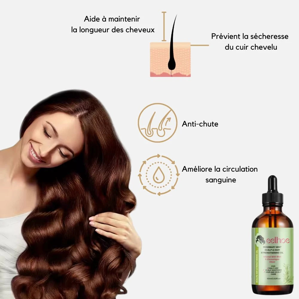 Stimulez la pousse de vos cheveux avec notre Huile Essentielle pour la Croissance des Cheveux ! Enrichie en actifs naturels, elle fortifie les racines, boost la circulation du cuir chevelu et réduit la chute. Idéale pour des cheveux plus épais, résistants et éclatants. Offrez à vos cheveux un soin puissant et efficace !