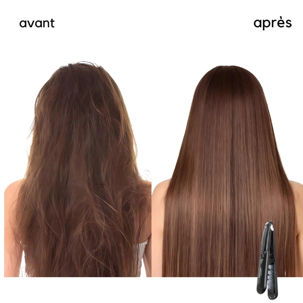 - Démêler et lisser lentement : Démêlez soigneusement les cheveux et lissez-les lentement, mèche par mèche.