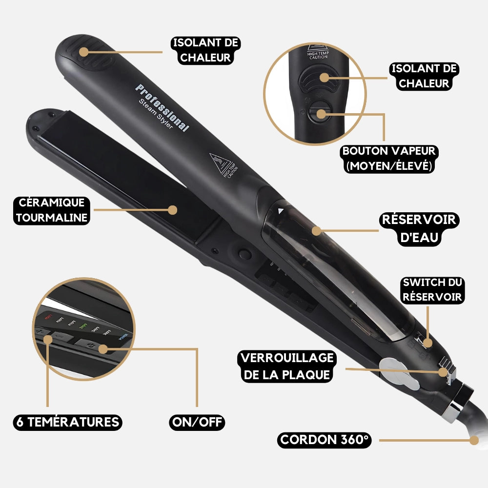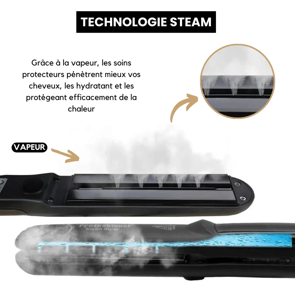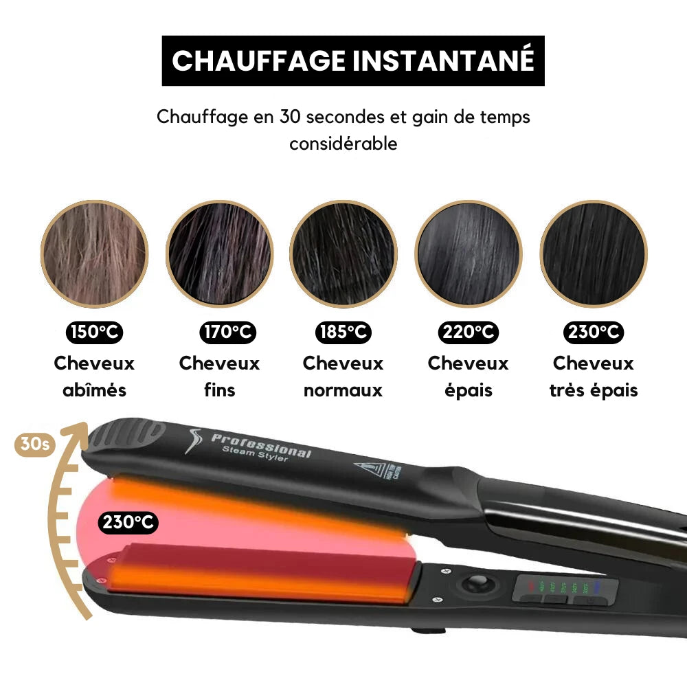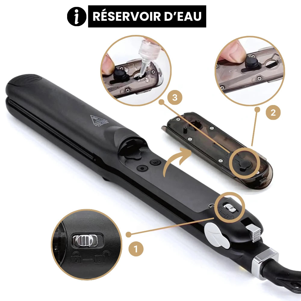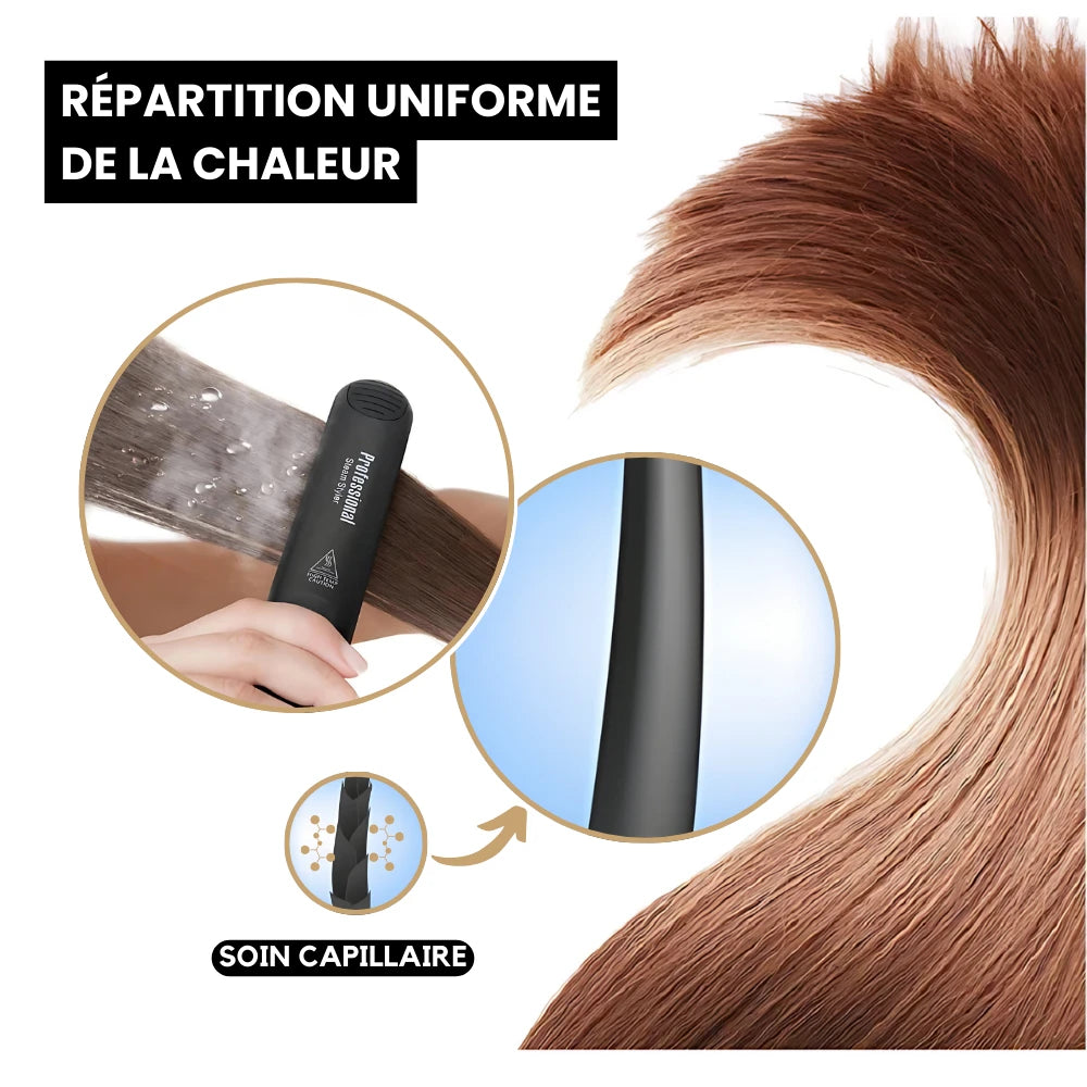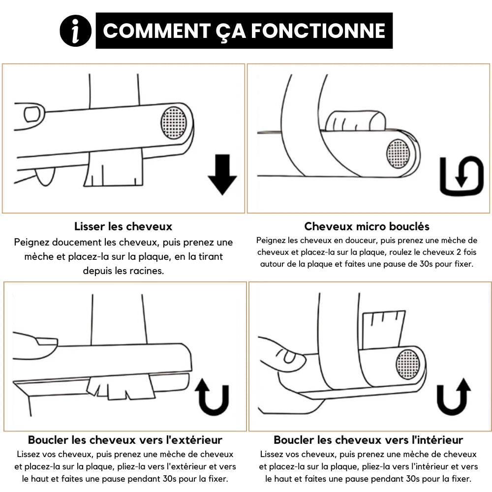 - Sécher les cheveux avant utilisation : L'eau étant un conducteur de chaleur, il est important de bien sécher les cheveux avant de les lisser.