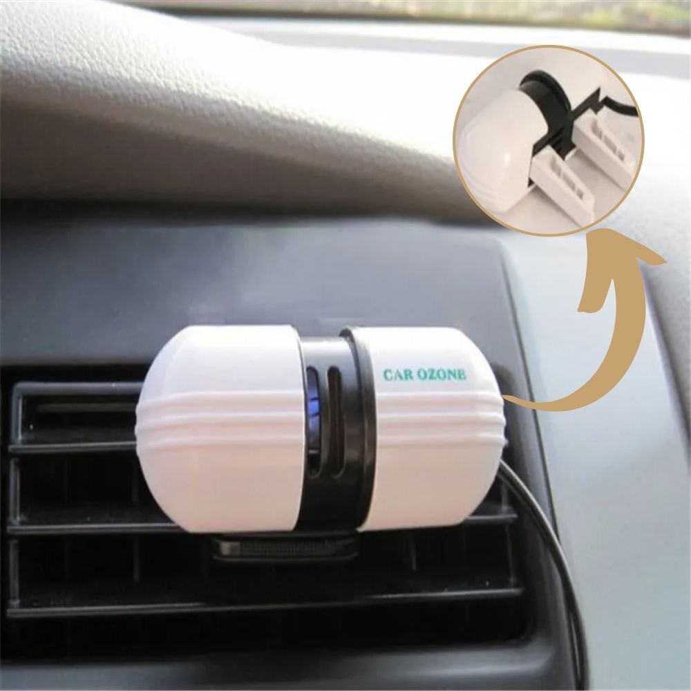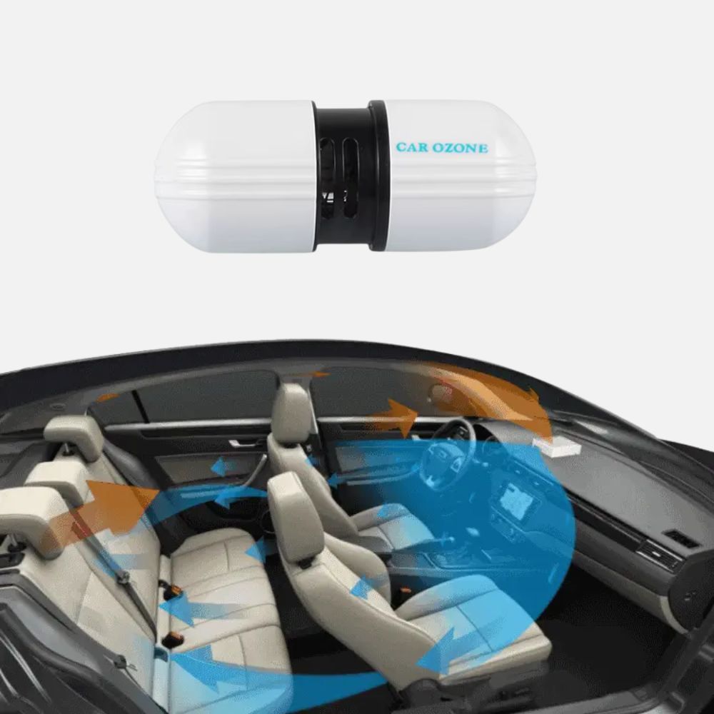 Le purificateur diffuse de l’ozone (O₃) dans l’habitacle via le flux d’air de votre ventilation. L’ozone neutralise les odeurs, les bactéries, les moisissures et purifie l’air ambiant en profondeur.