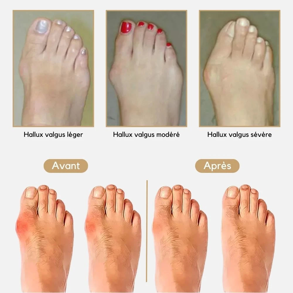 Soulagement immédiat Réduction de la douleur causée par l’hallux valgus et autres déformations des orteils.